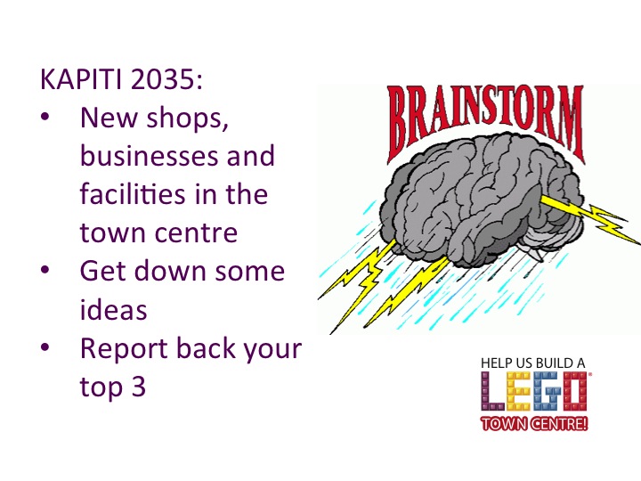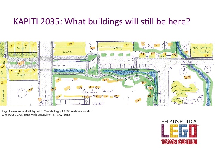 We brainstormed ideas for Kapiti 2035 and took a look at the plan for our model and dished out plots for people to build. People wanted to know how big the spaces were in Lego ‘studs’ and Jake explained that 1 stud-wide brick = 8mm. Together we discussed what extra bricks would be needed – green baseboards, leaves, flowers, green bricks, these have now been ordered from overseas.