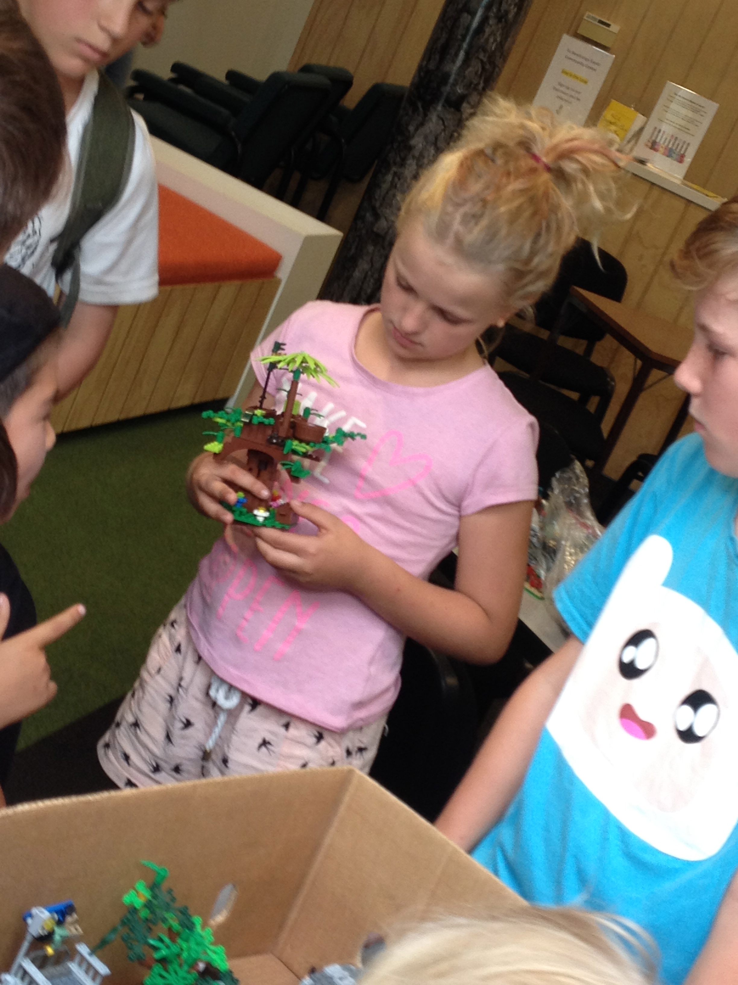 Alongside Lego free play for the kids we also had a show n tell of models, Jake updated us on his progress building the existing Farmers building, what an amazing model! He also showed the LED light modules that have been made up for builders to integrate into their models – the battery pack will fit into a space 4 studs wide, 8 studs long and a little less than 2 bricks high. The batteries should last 100 days if new, so you can build them right into your model. We have blue, green yellow red and white, flashing and non-flashing.