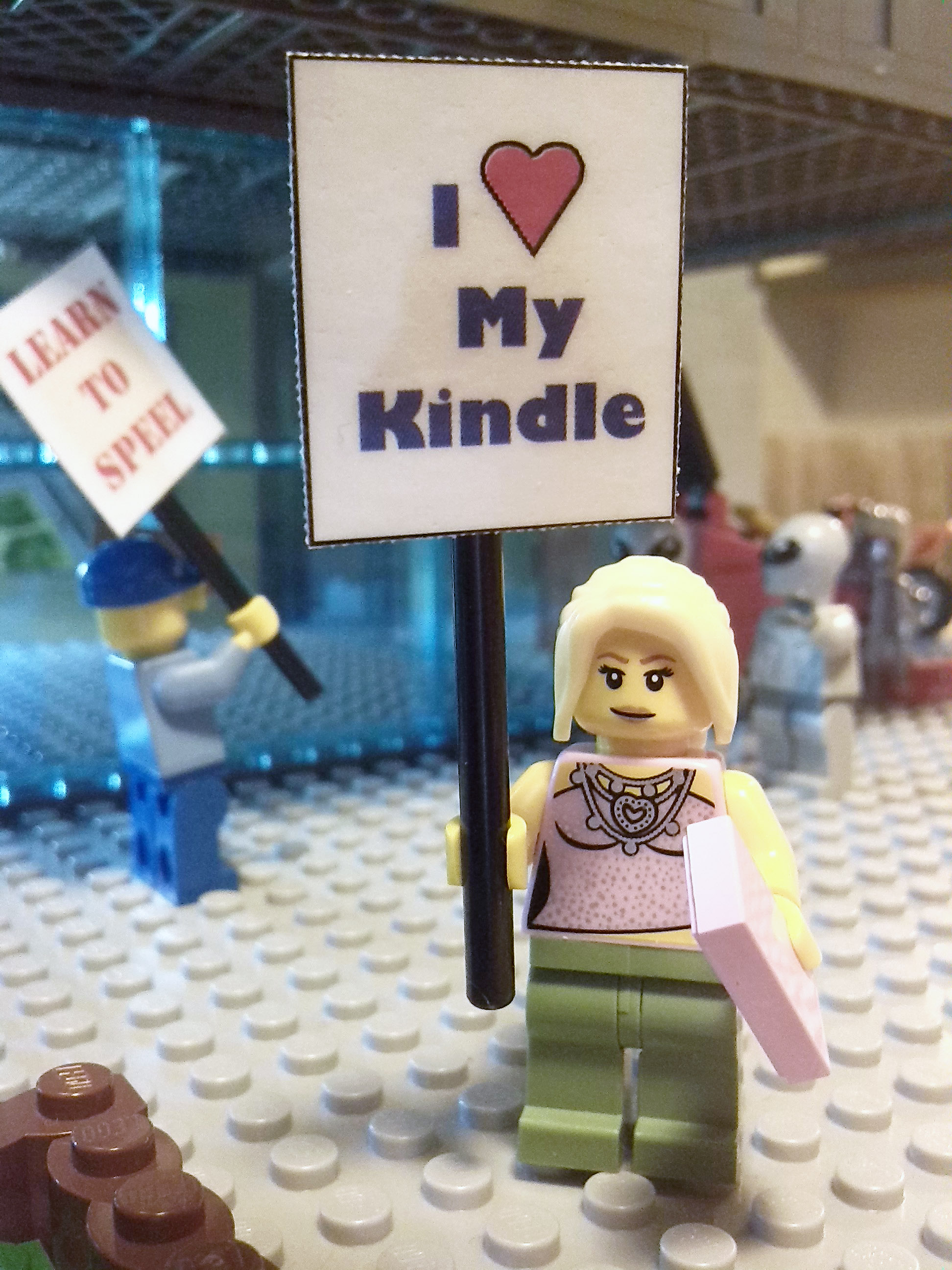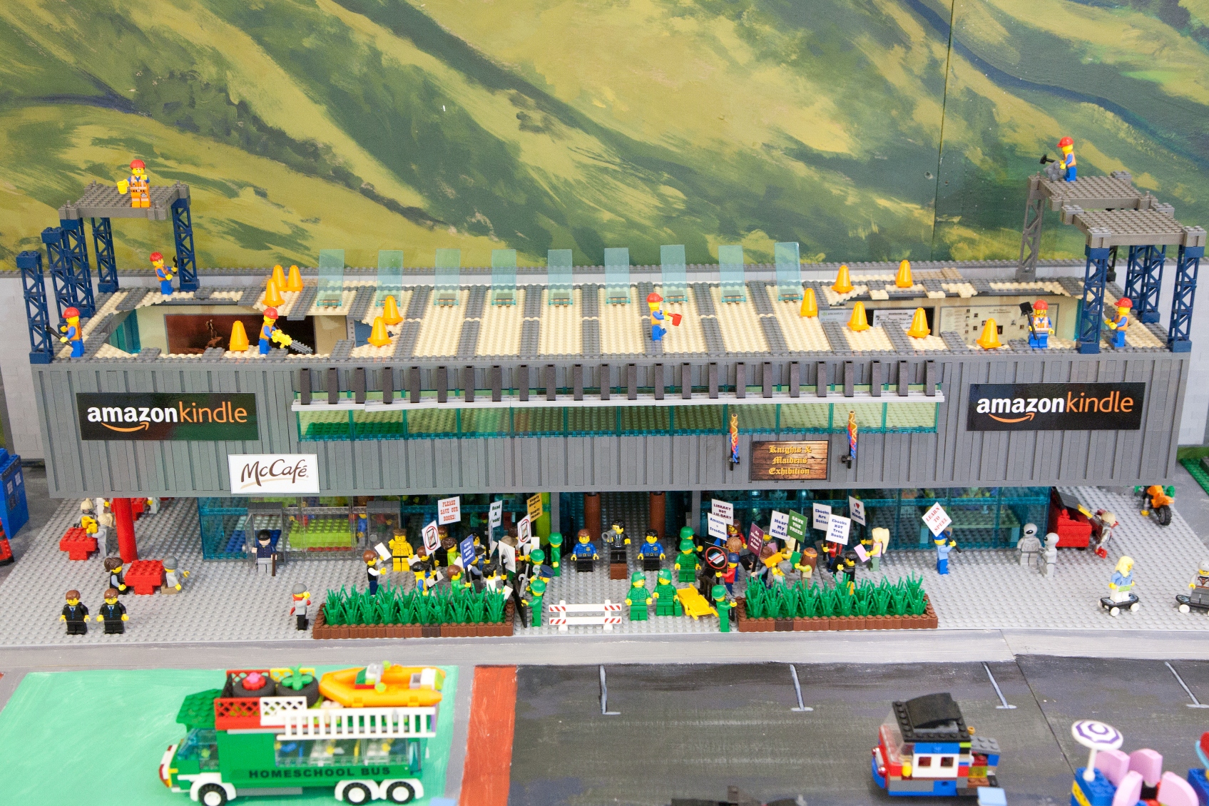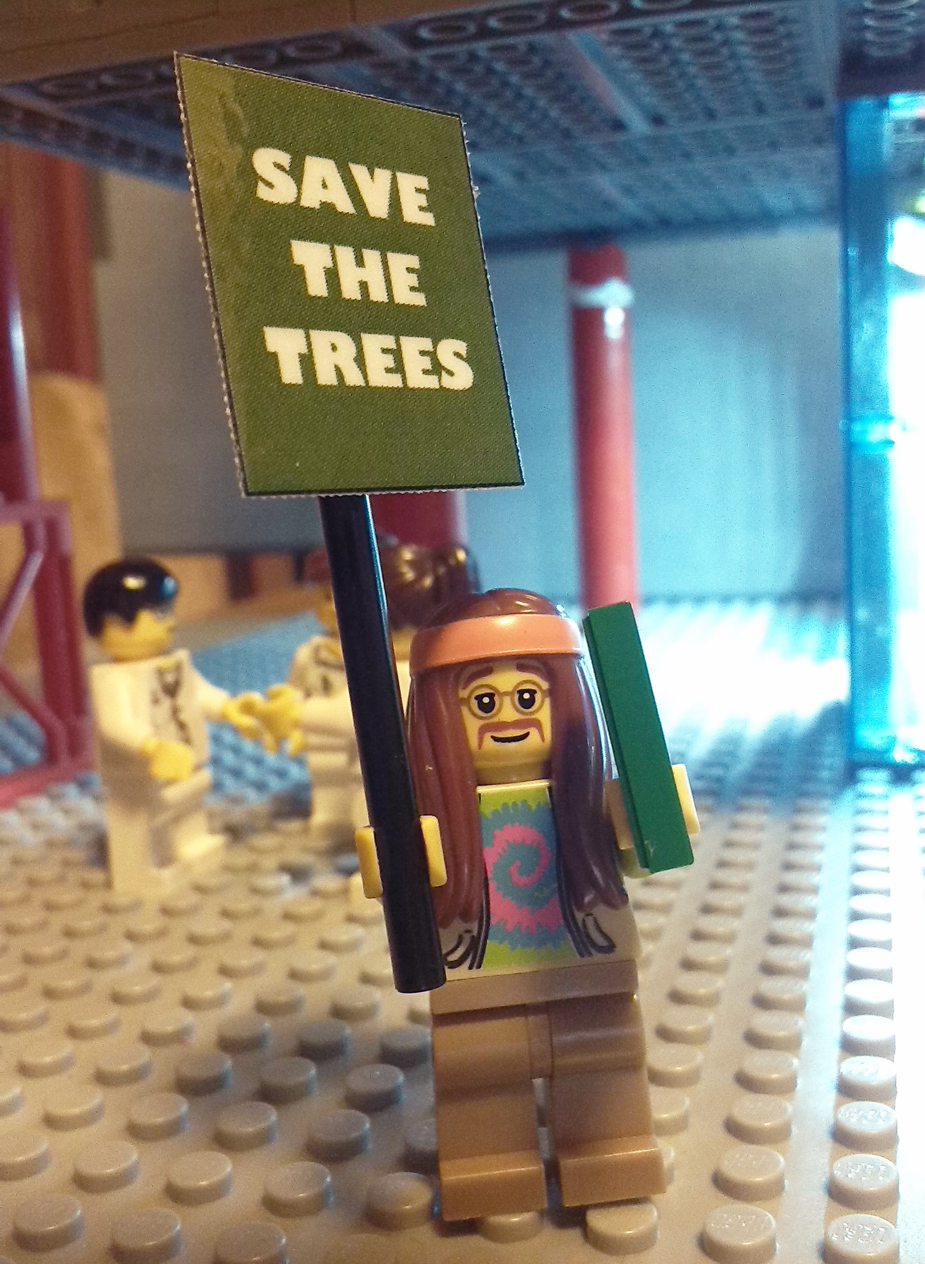 But not everyone is happy with the changes that are taking place! Outside the library there is a commotion! A protest march has just assembled outside the library. There are 2 groups of protestors, one in favour of the e-books (Save the Trees), and one group in support of keeping the real books in the library. Mayor Jake Roos is about to speak to the protestors, while the army keeps both groups under control.