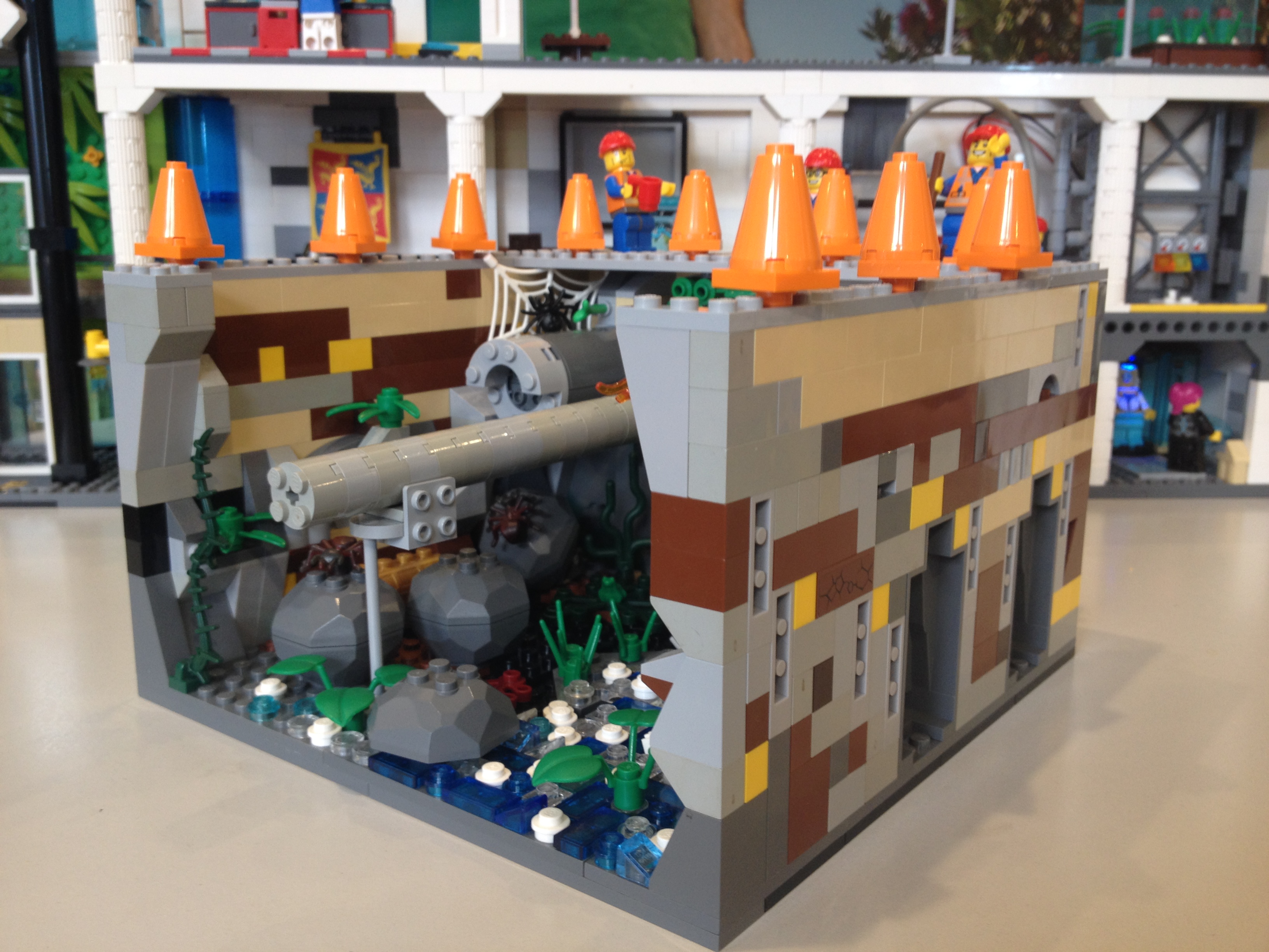 The waste water pipe is broken and is pouring into an underground cave.